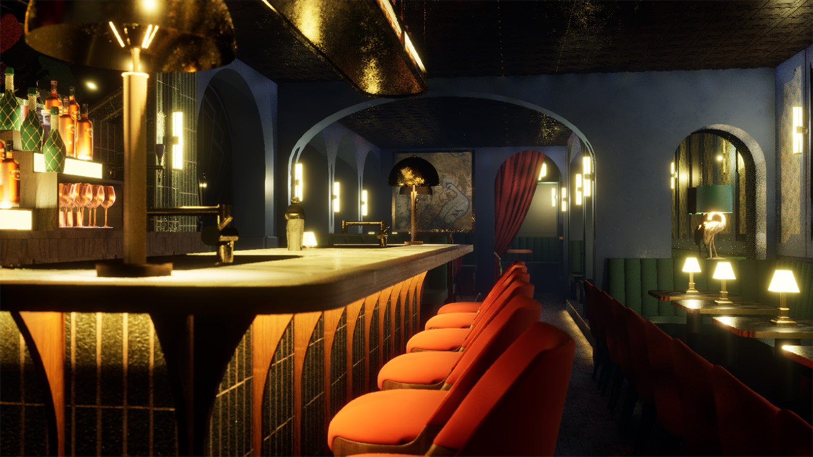 The ambiance of this cocktailbar was only presentable through cinematic renders. Something sketchup models can't provide.